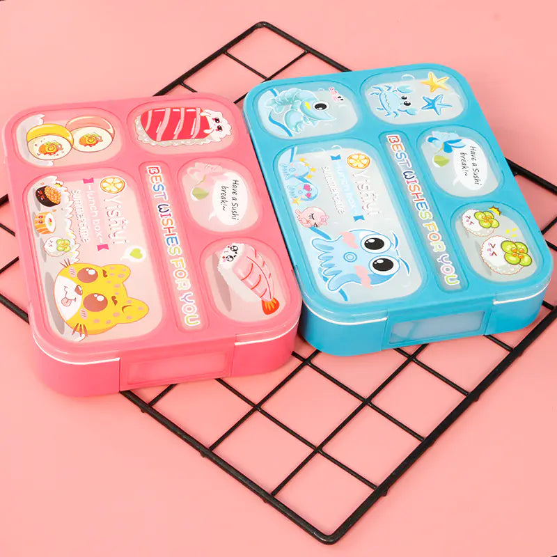 Cute Japanese Plastic Lunch Box with Utensils (Multi-Compartment)
