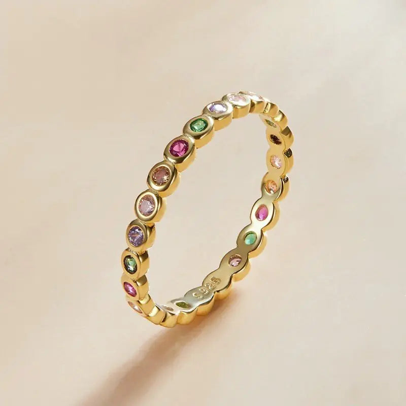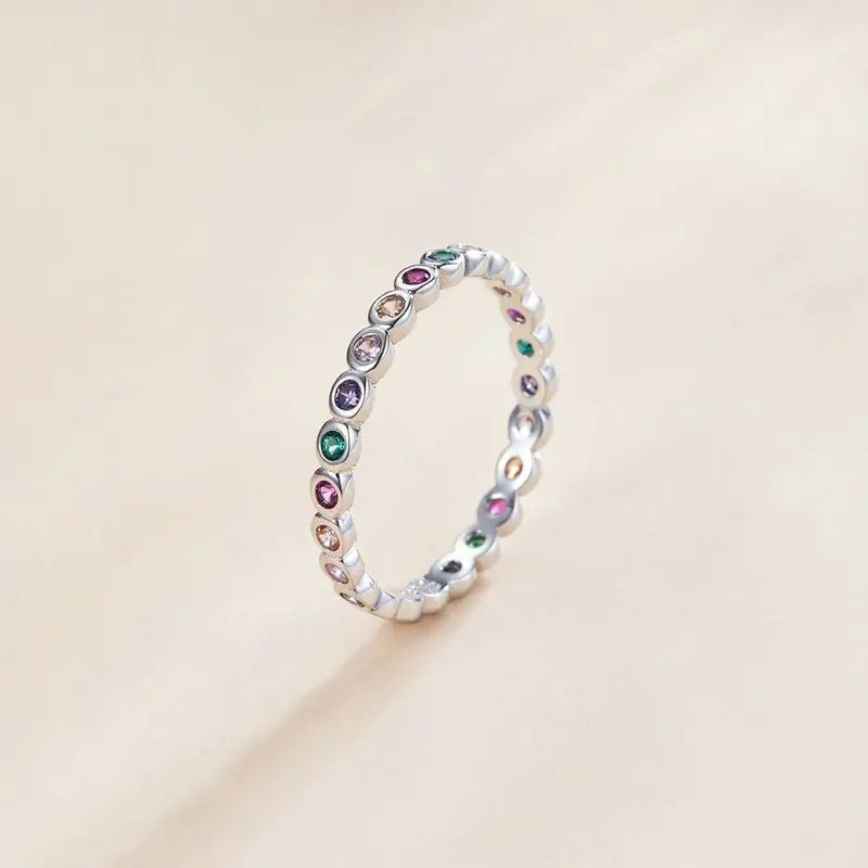 S925 Silver Colorful Zircon Rainbow Ring for Women